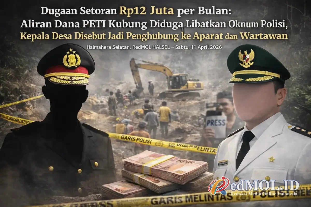 Halmahera Selatan, RedMOL.id – Praktik pertambangan emas tanpa izin (PETI) di Desa Kubung, Kecamatan Bacan Selatan, kembali menyisakan persoalan serius. Oknum anggota Polres Halmahera Selatan berinisial IDS diduga menerima setoran Rp12 juta per bulan dari pengusaha tambang ilegal agar aktivitas tetap berjalan.